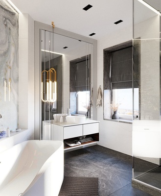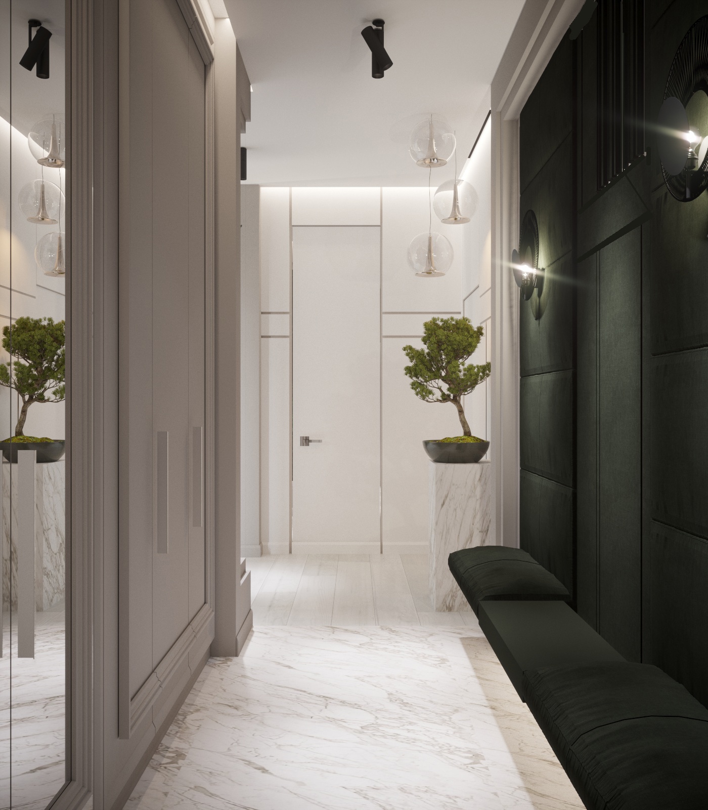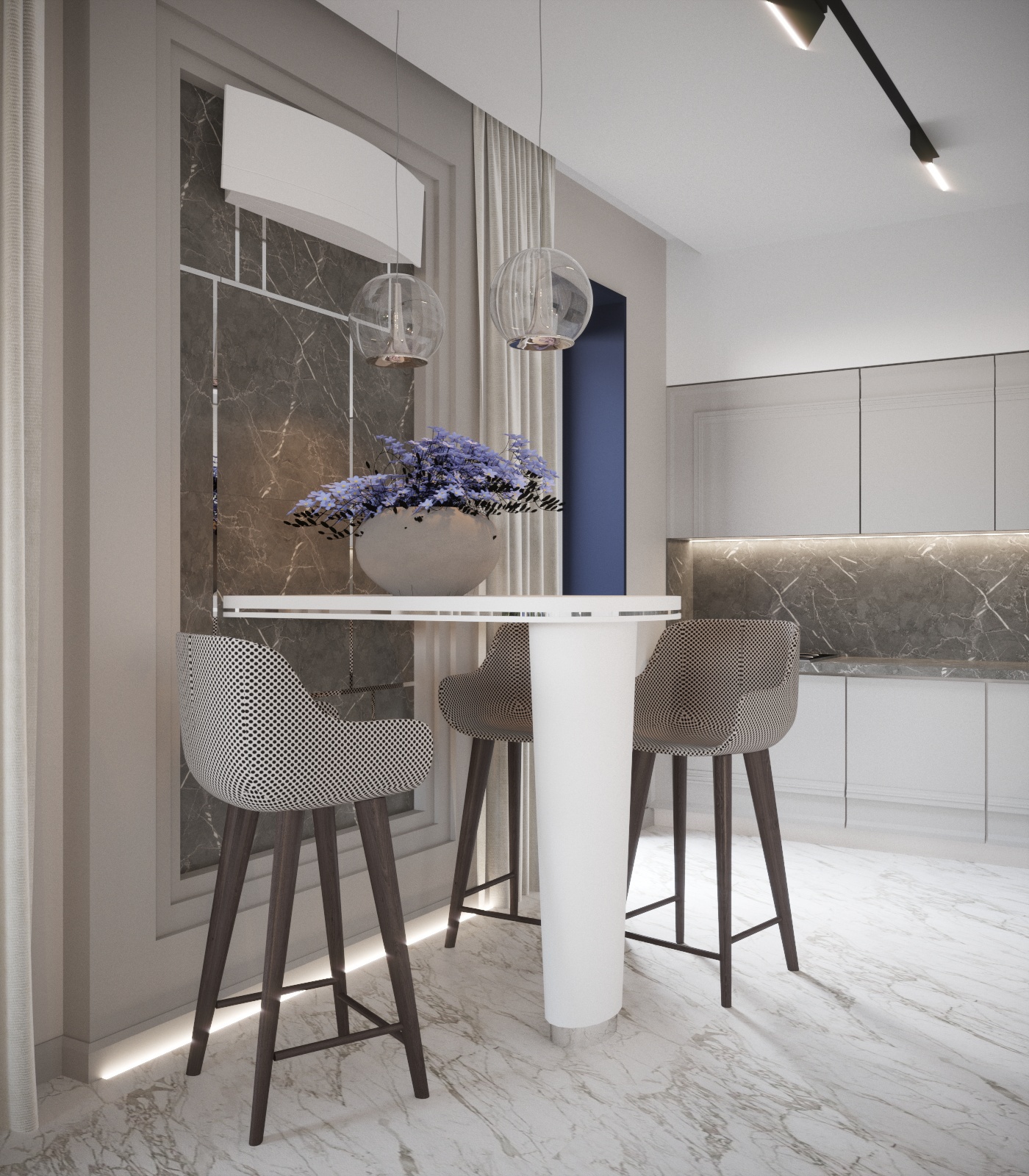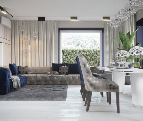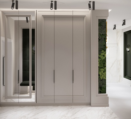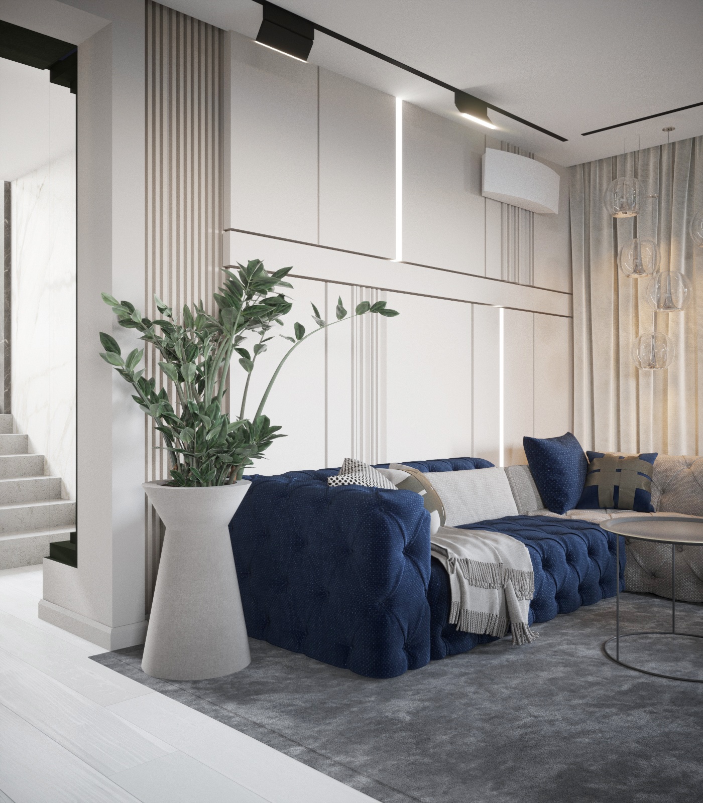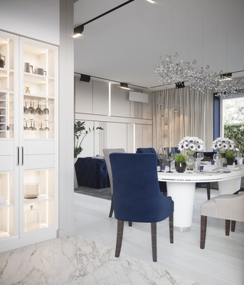 Проект дома для молодой пары с ребенком. Задачей было сделать интерьер с элементами современной классики, работали в существующих стенах над грамотной расстановкой функционала.